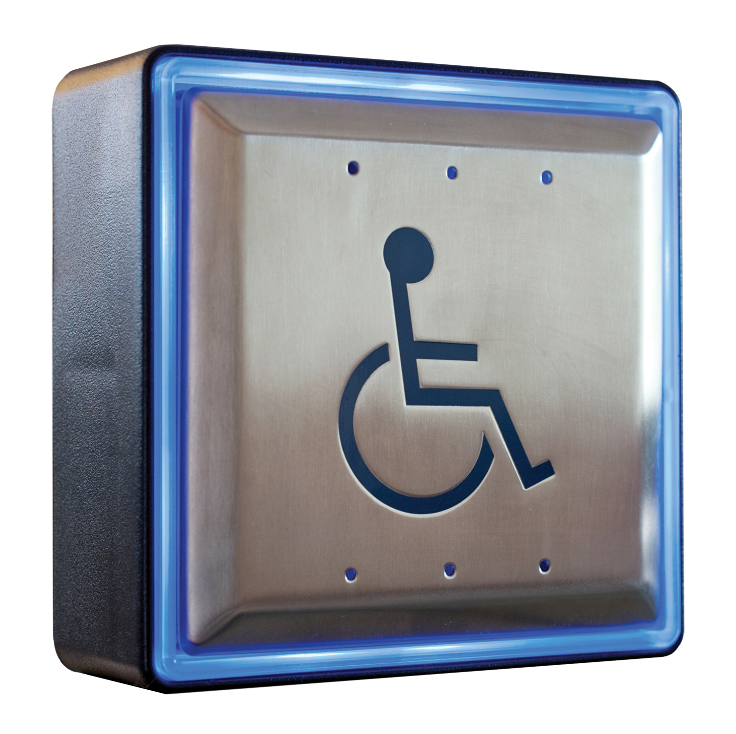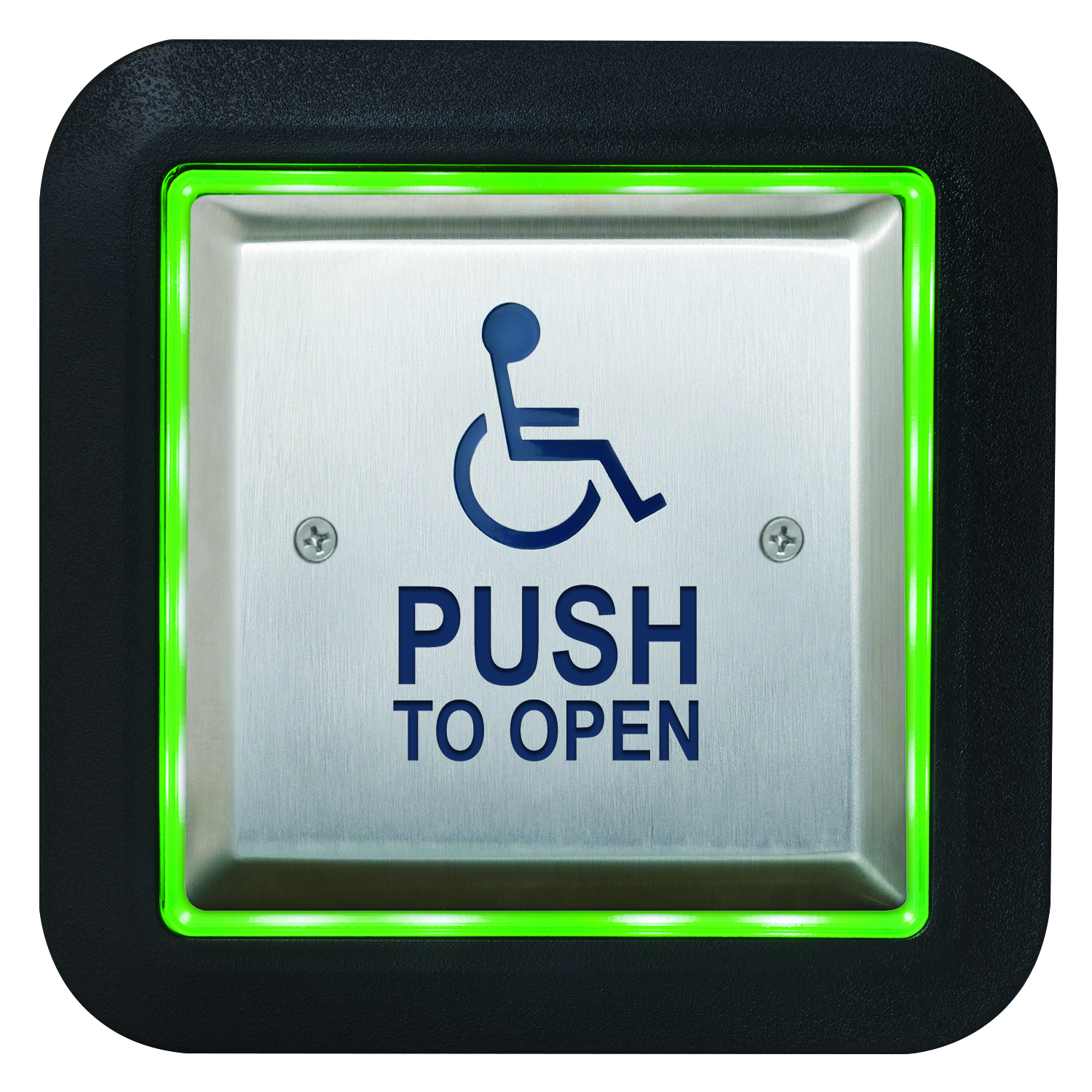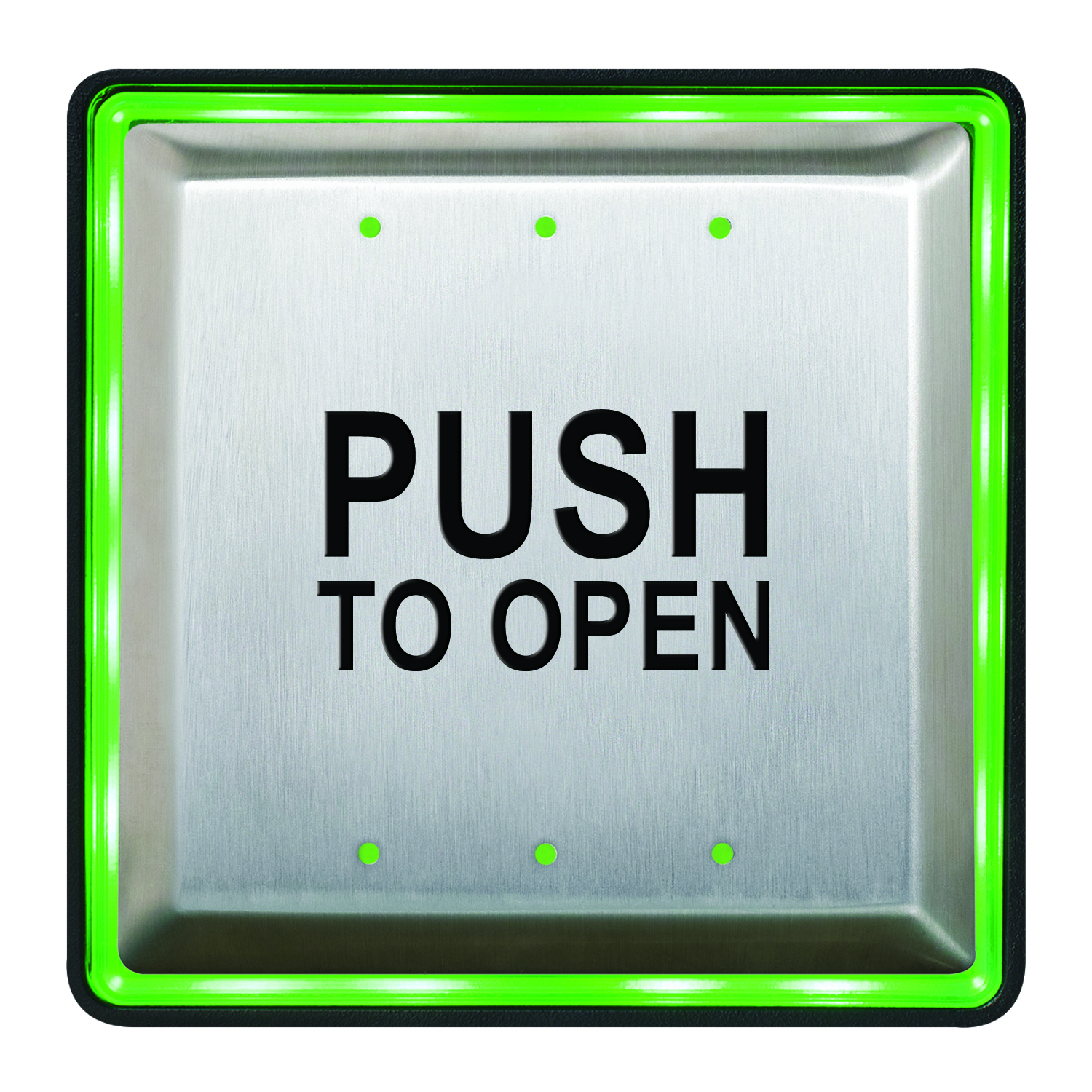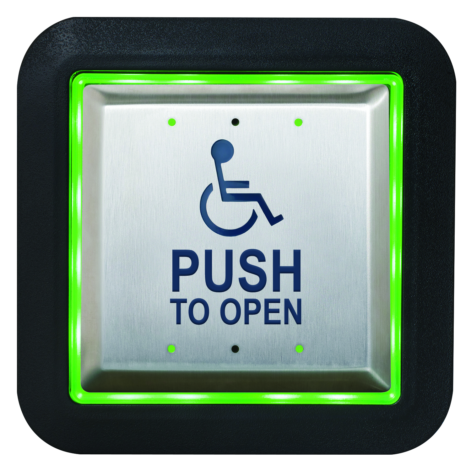 Les boîtiers de plaque de poussée éclairés Aura ™ CM-54 (carré de surface), CM-55 (carré affleurant) et CM-57 (rond affleurant) offrent une grande visibilité et une commodité accrue pour l’utilisateur dans les portes automatiques conformes à l’ADA et d’autres applications.