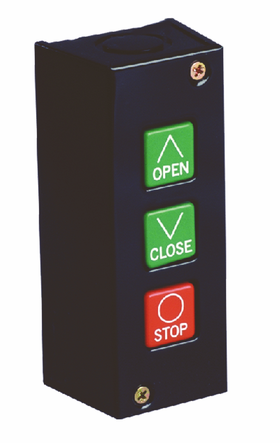 3 boutons, OUVRIR/FERMER/ARRÊT, homologués NEMA 1, 5A à 30Vca