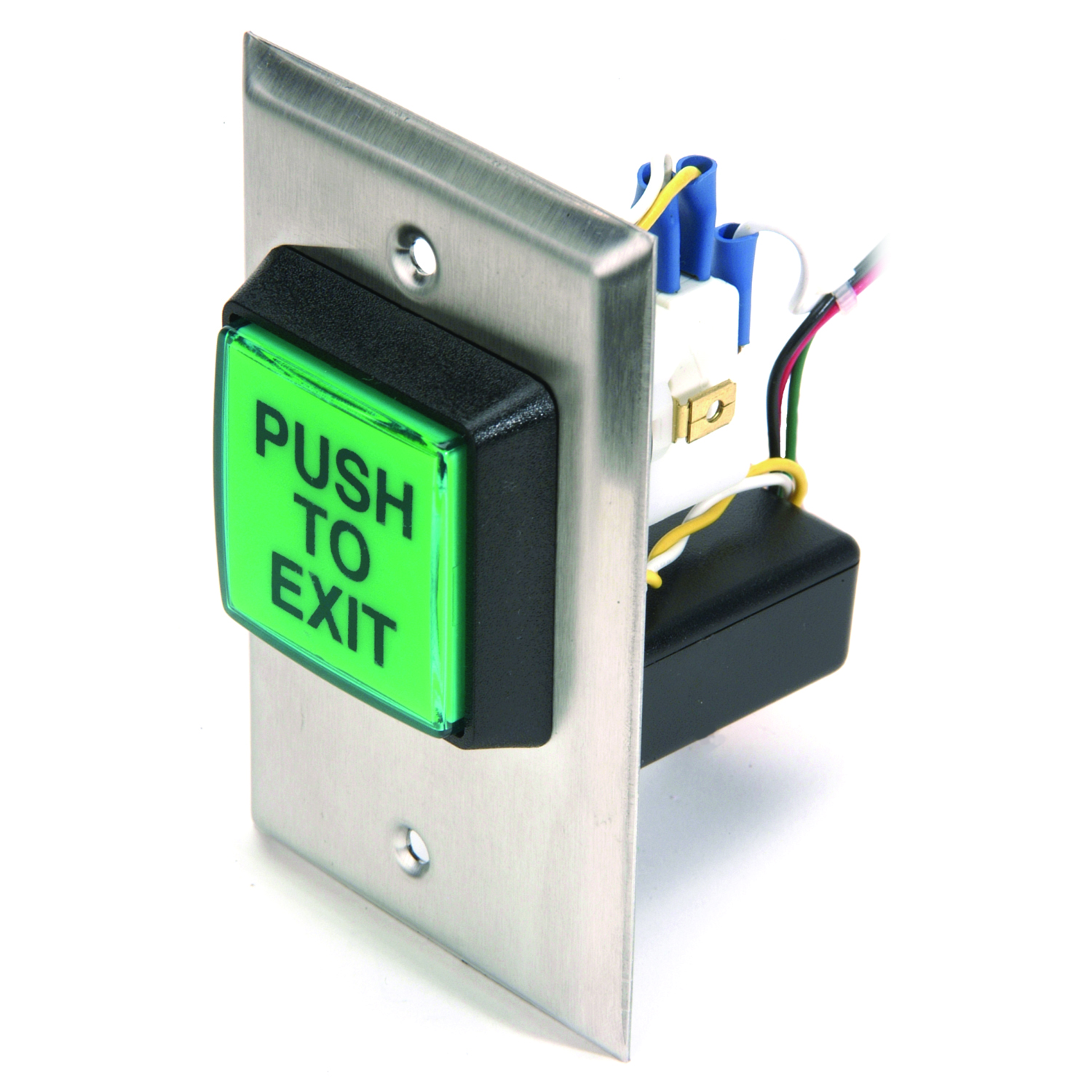 Les commutateurs de sortie à éclairage DEL CM-30EE et CM-30AT sont des commandes de «demande de sortie» très visibles et peu coûteuses. Les boutons sont rétroéclairés en vert avec un texte en noir POUSSEZ POUR SORTIR. Ils sont recouverts d'une plaquette à commande unique en acier inoxydable et avec des vis inviolables.