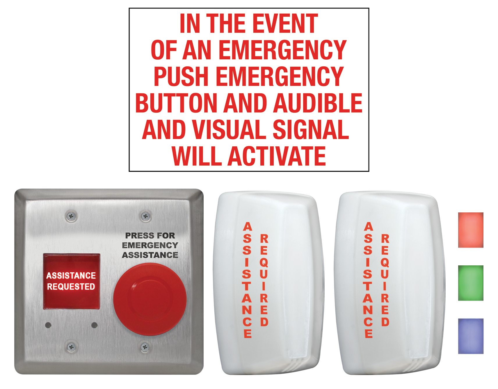 Voyant DEL à commande unique avec résonateur «AIDE DEMANDÉE» réglable Ajoutez le suffixe «F» au numéro de modèle pour la langue française. Ajoutez le suffixe «FE» au numéro de modèle pour la langue bilingue anglais et français.