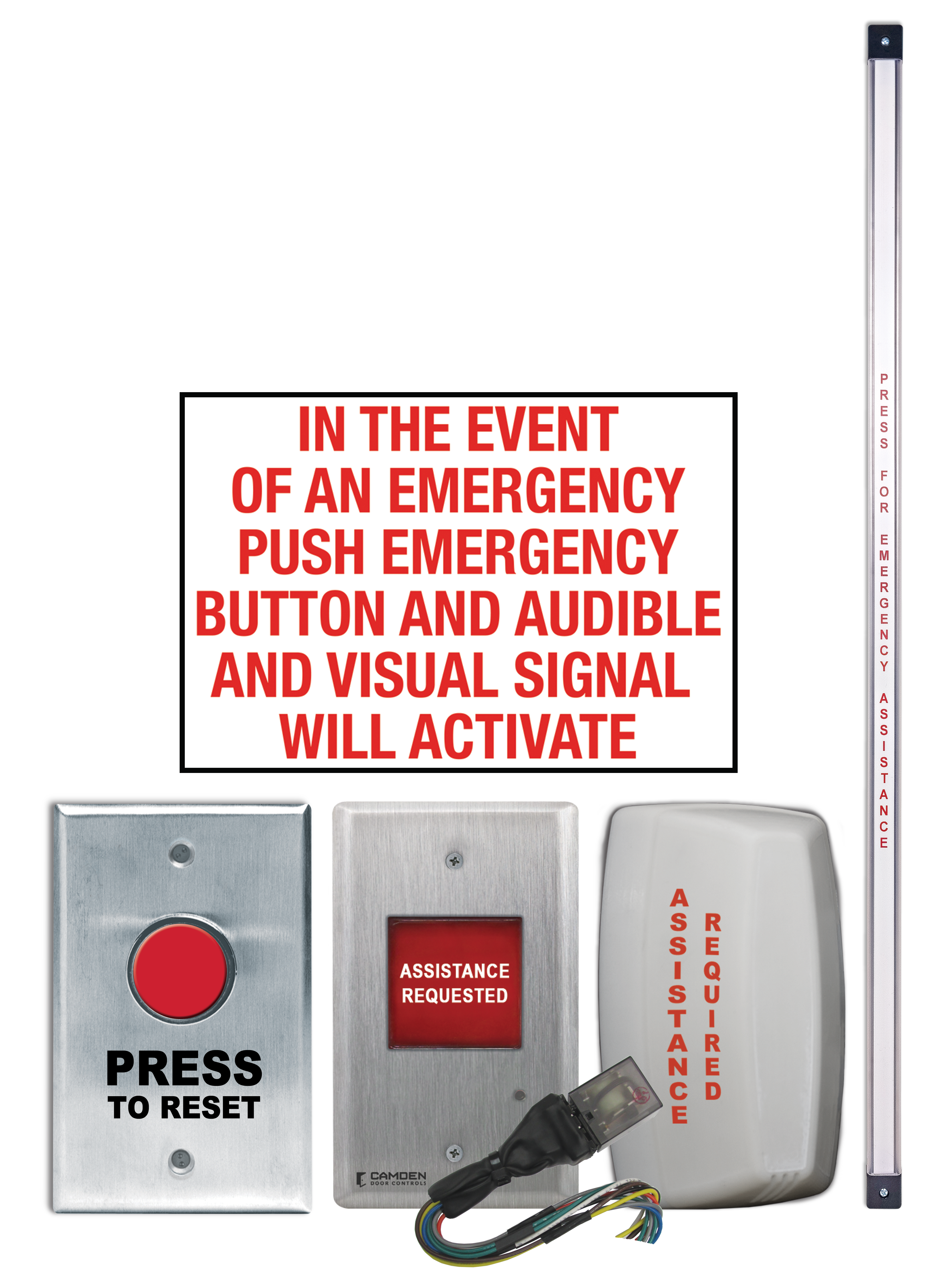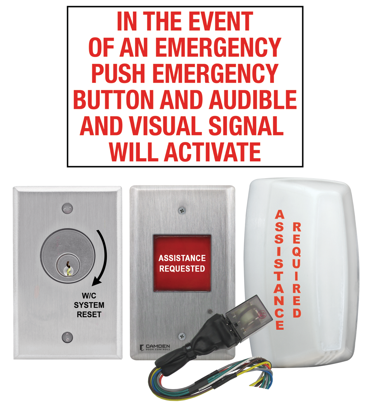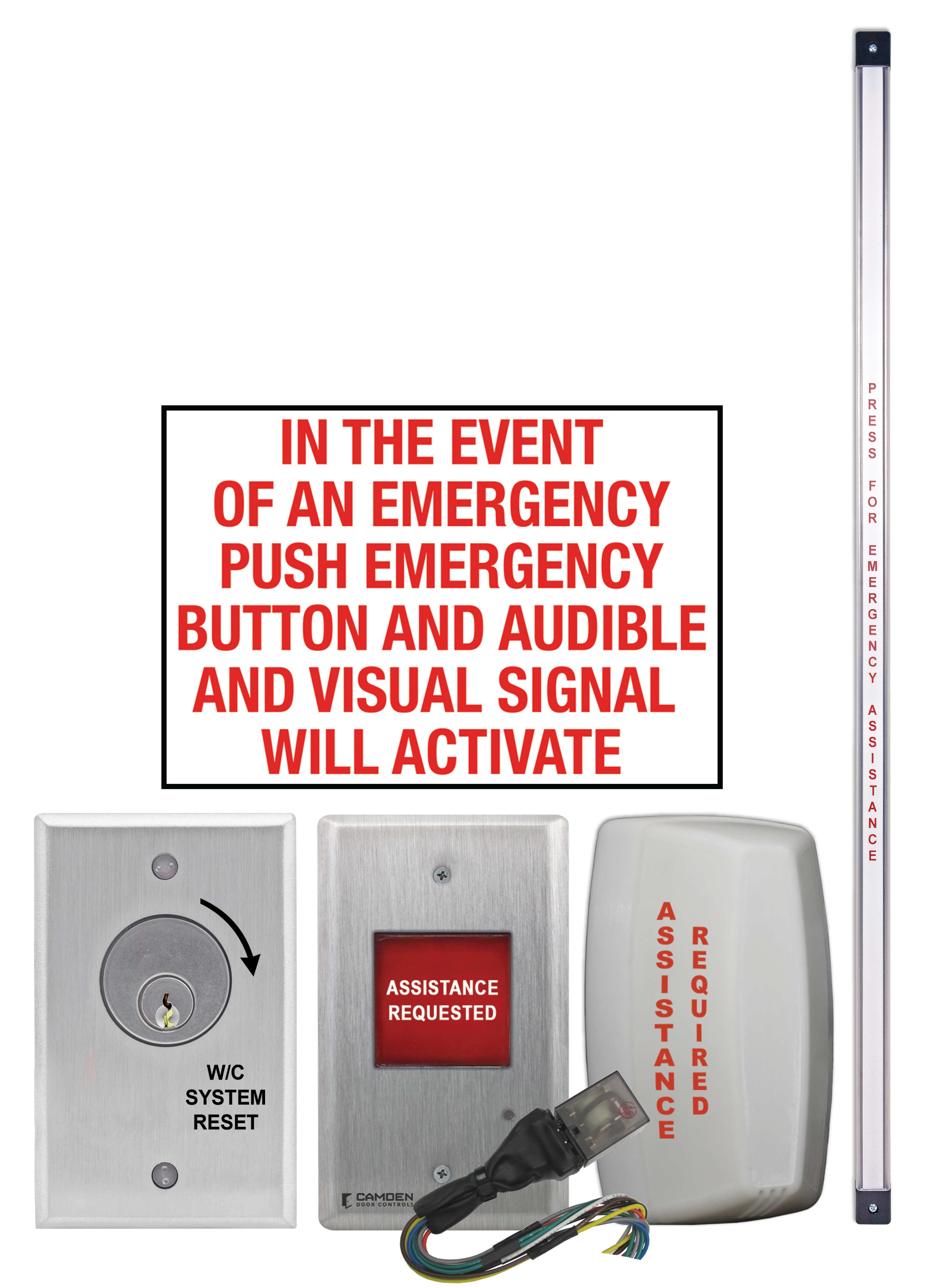 Trousses de systèmes d'appel d'urgence de série CX-WEC La série CX-WEC de Camden est un ensemble de matériel pour répondre aux dernières normes du bâtiment pour les toilettes universelles. Appel d'urgence pour les trousses universelles des toilettes peut être installé dans des toilettes sans commande automatique de portes ou avec des trousses de série CX-WC de commandes avec commande automatique sans obstacle.