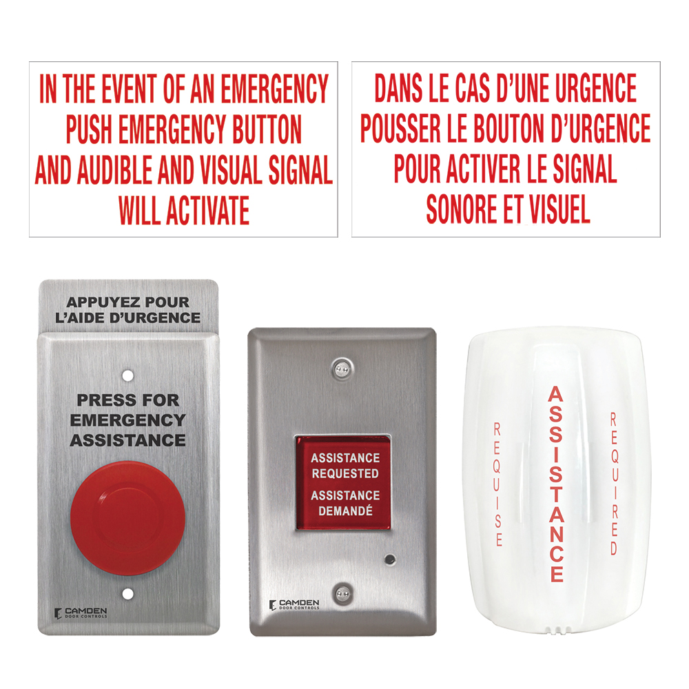 À employer avec des commutateurs à contact momentané identifiés par la consigne «Appuyez pour aide d'urgence» (en supplément).