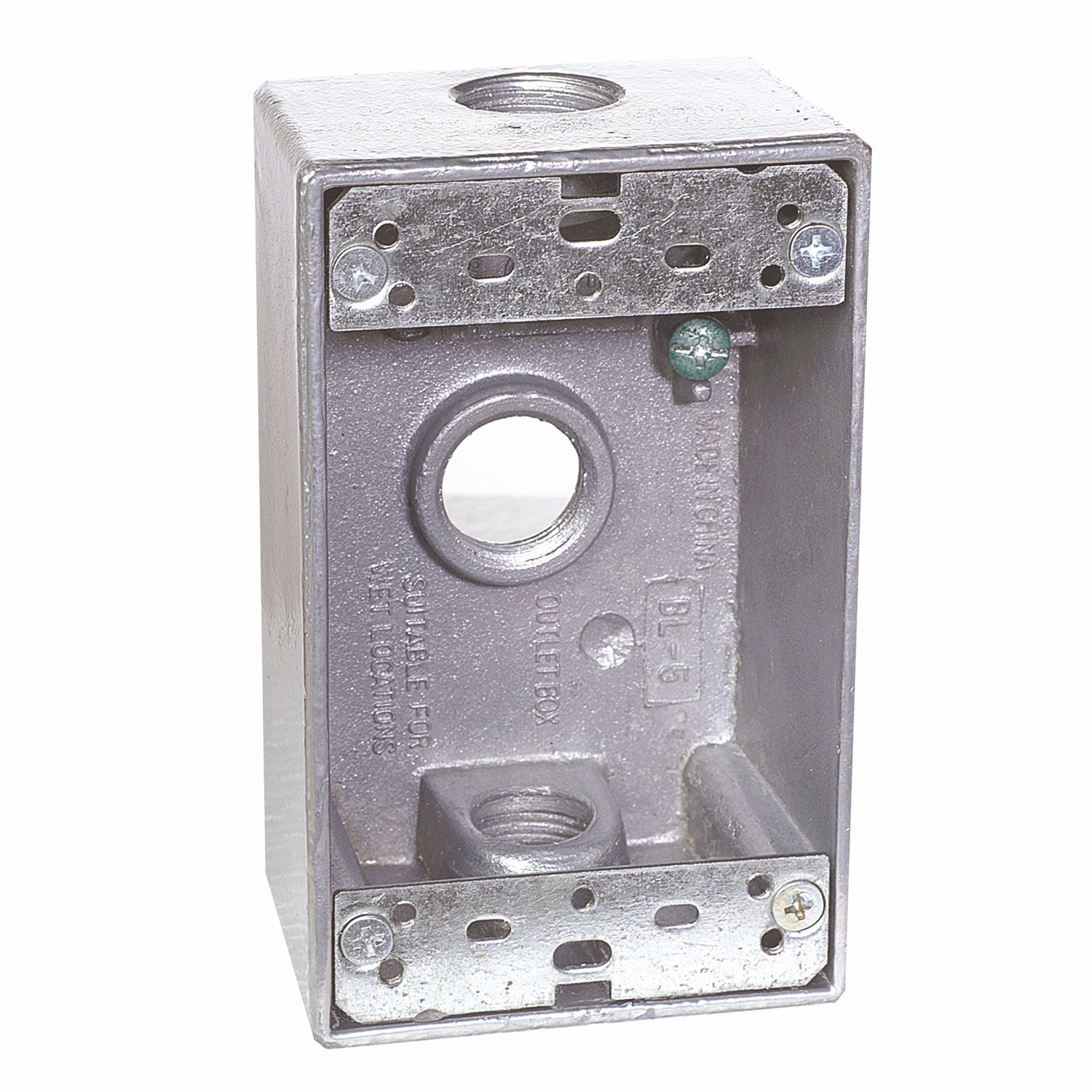 Boîte de surface, profondeur standard, entrée de conduit filetée. Fonte d'aluminium robuste 2-3/4"L x 4-1/2"H x 1-3/4"P